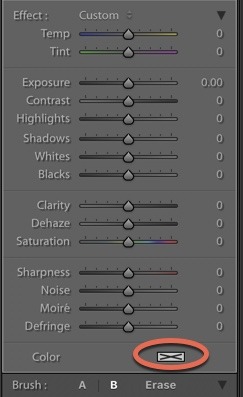 If you simply use the blue and purple sliders in the HSL Panel, it will affect the blues and purples in the whole image. I wanted to decrease the purple in the fabric more precisely. You can now do this with the range mask tool.