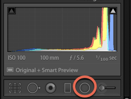To use the radial filter tool, click on it in under the histogram.