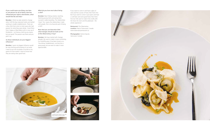 Their latest editorial is a magazine to accompany their catalogue, showing case studies of how their tableware is used in restaurants around the world. The magazine is soon to be debuted in the US at the NRA trade show in Chicago. My job was to shoot portraits of Chef Brendan at The Observatory Restaurant at Grouse Mountain in Vancouver, BC. The Observatory was the only Canadian restaurant featured.